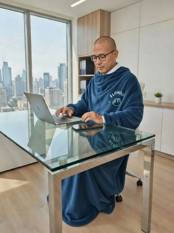 Flohoo isn’t just for relaxing — it’s designed for real, everyday life. Whether you're working from home or spending hours at your desk, the open-back design and secure fit allow full arm movement while keeping your body comfortably warm.